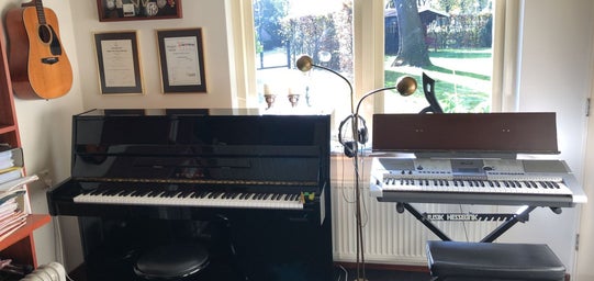 Het Keyboardhuijs beschikt over een eigen lesruimte in Geesteren en Vriezenveen. In Geesteren staan een piano en een Yamaha YPT-410 keyboard en in Vriezenveen staat een keyboard. Het is dus niet nodig om voor de lessen je eigen keyboard van huis mee te nemen. Natuurlijk moet je thuis wél een keyboard of piano hebben om te kunnen oefenen!
